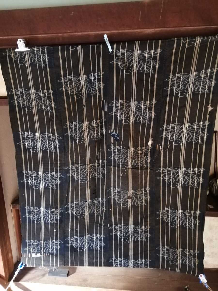 - 弓ヶ浜絣 蒲団地 花文縞 明治後期 山陰 弓ヶ浜 藍染 木綿 絣 機織り 古布 リメイク 木綿口伝 福井貞子 08N59v3