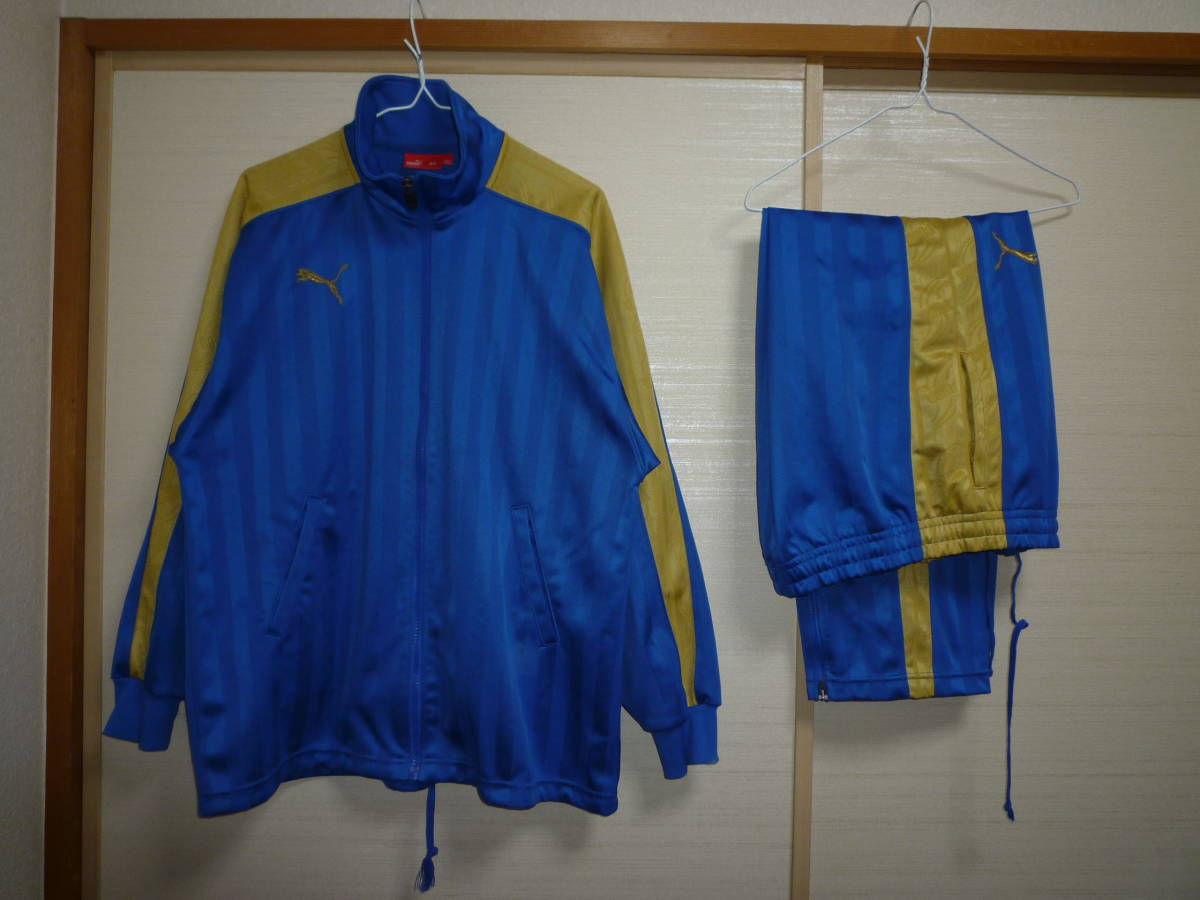- プーマ シャドーストライプ上下 青×金 SSサイズ ロゴ擦れあり