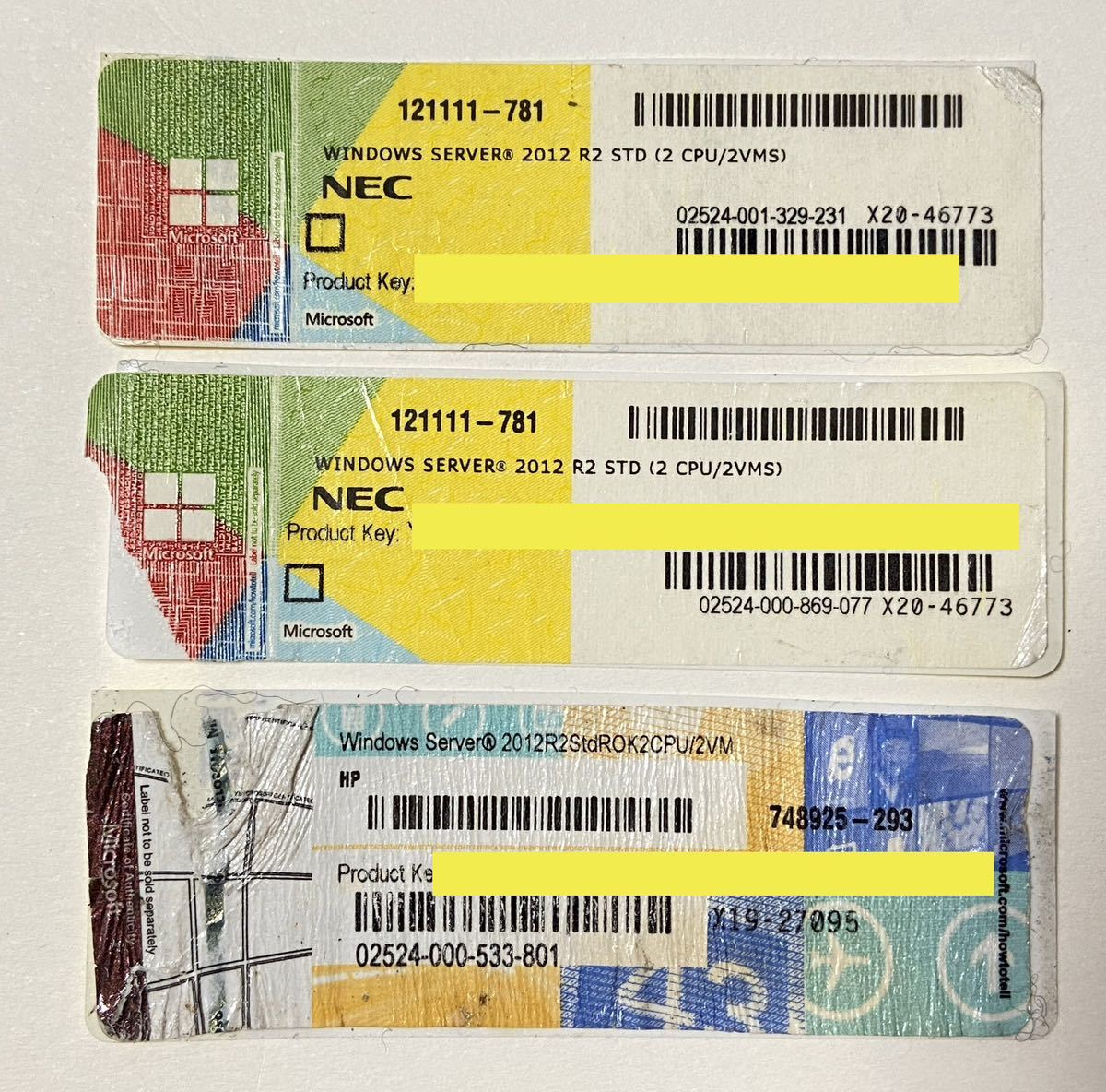 - 【正規品】Windows Server 2012 R2 Std (2 CPU/2VMS) プロダクトキーシール x 3枚