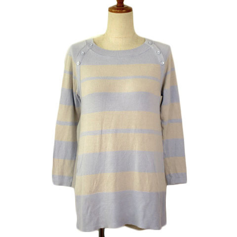 - インディヴィ INDIVI カットソー ニット ボーダー シルク混 05 青 ブルー グレー レディース