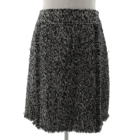 - ロペ ROPE スカート 台形 ひざ丈 ツイード フリンジ ブラック 黒 ホワイト 白 38 レディース