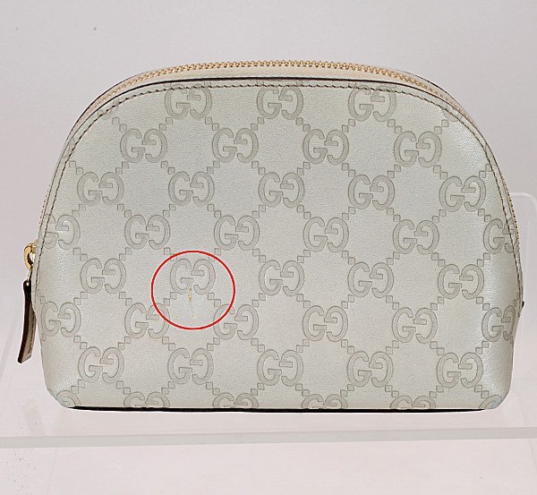 > グッチ GGシグネチャー 化粧ポーチ アイボリー系 送料無料 【b14】 GUCCI 141810 コスメケース 小物入れ レザー グッチシマ 中古