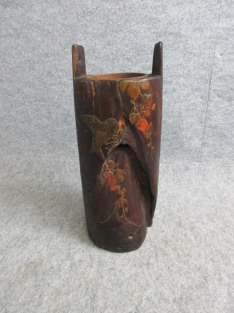 蒔絵 花入れです。寸法は高さ31cm、直径12cmです。状態は主観ですが良いと思います。80サイズ、ゆうパックで発送を予定しています。