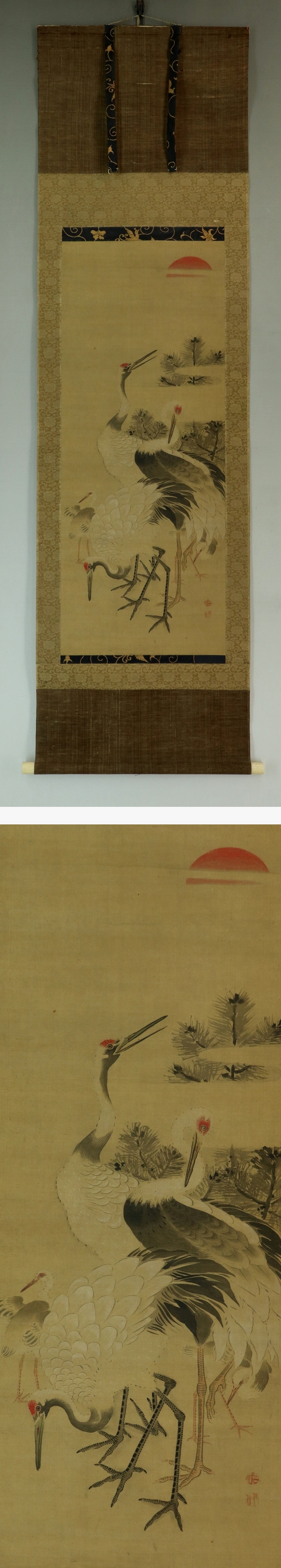 - 【肉筆】古画【慶祝図】◆絹本◆掛軸 u06125