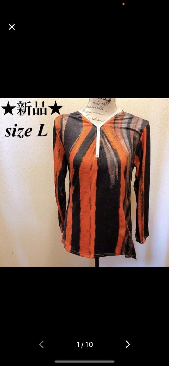 - ★新品★オレンジ&ブラックストライブ★総柄★ファスター付き長袖Tシャツ★L★最終値下げ★他フリマでもセール中★現品限り!