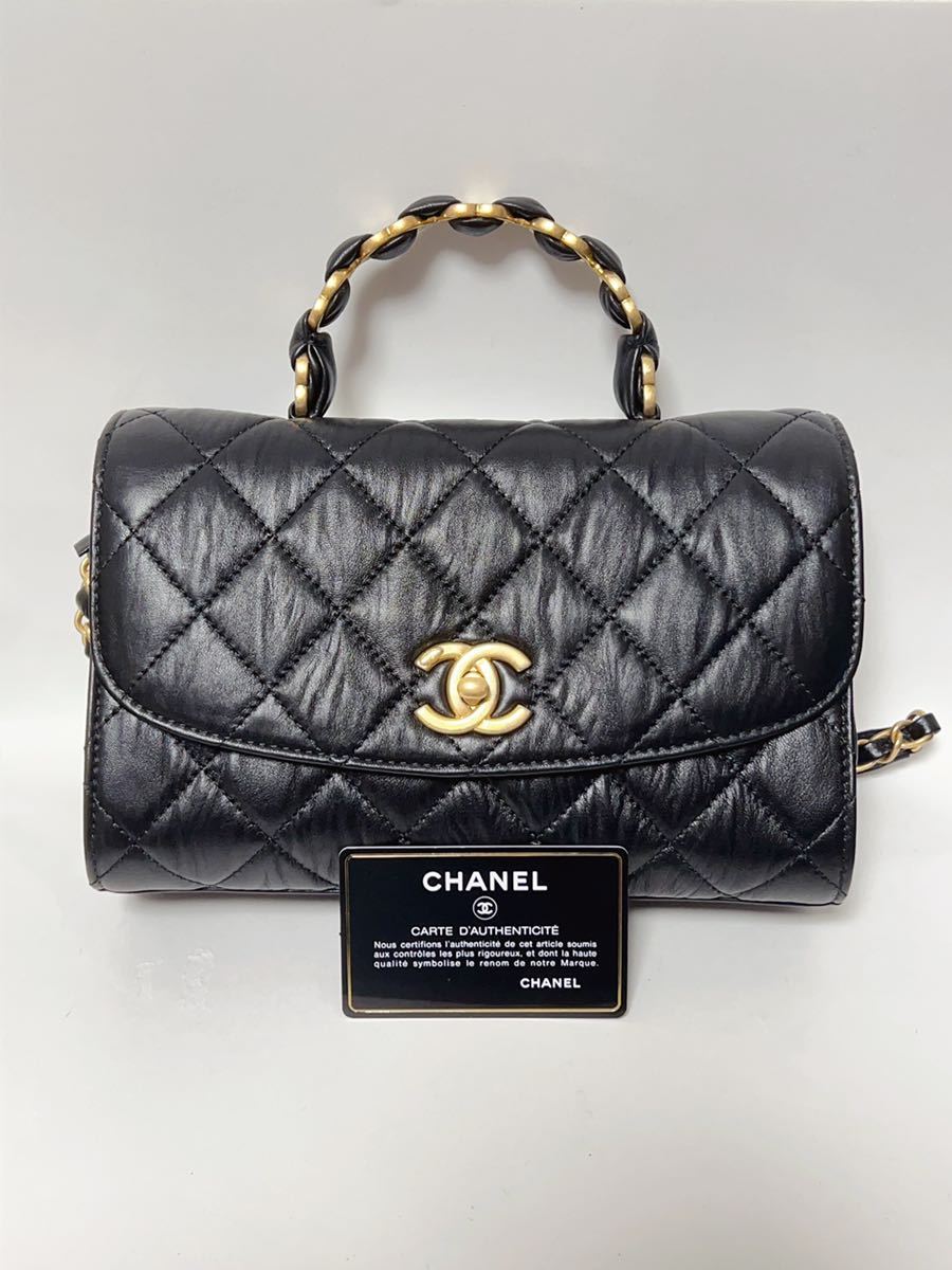 - CHANEL シャネル AS2478 B05514 94305 スモール トップハンドル フラップバッグ クランプルラムスキン ブラック マットゴールド金具2021SS