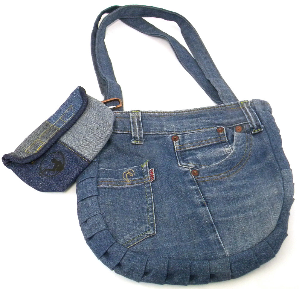 - ★ デニムリメイク ショルダーバッグ & ポーチ 【2点セット】