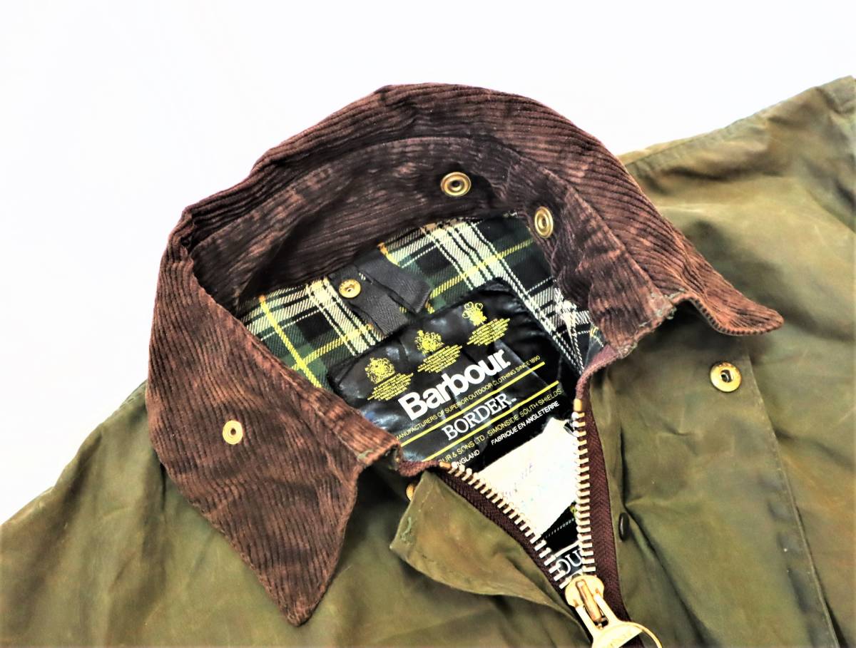 > 88年製 バブアー 英国製 ビンテージ barbour 旧裏地 定番ボーダー 3ワラント セージ 38 オイルドジャケット