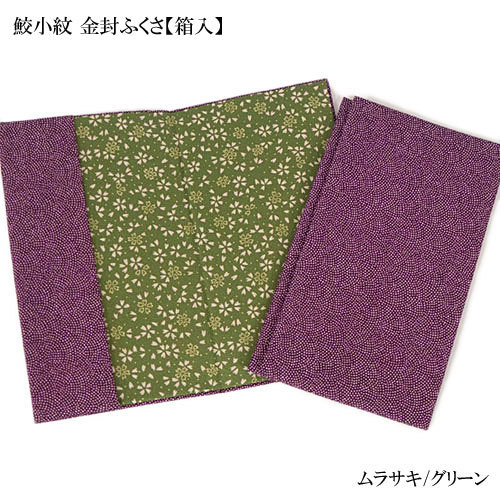 - ふくさ 袱紗 鮫小紋 金封ふくさ ムラサキ/グリーン 箱付き 弔事向き 絹 箱入りで贈り物に メール便