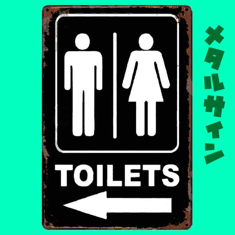 > A2146 メタル サイン ブリキ 看板 金属 プレート 店 室名 札 ピクト トイレ 男 女 お手洗い 化粧室 矢印 左 方向【3385】
