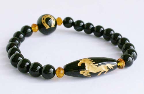 - オニキス「金馬」「馬蹄」開運ブレスレット 17.5cm