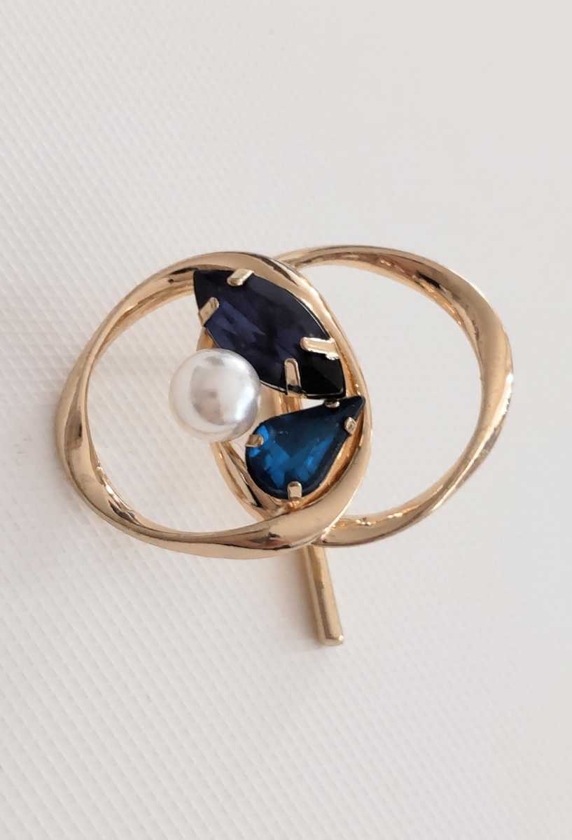 - 新品未使用 パールビーズ ブルー ティアードロップ ゴールドカラー ポニーフック