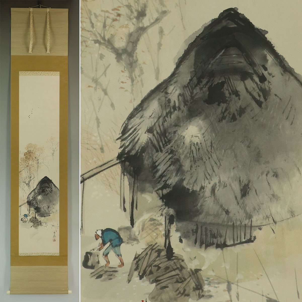 - 【真作】徳田隣斎【田家晩秋】◆紙本◆共箱◆掛軸 u06177