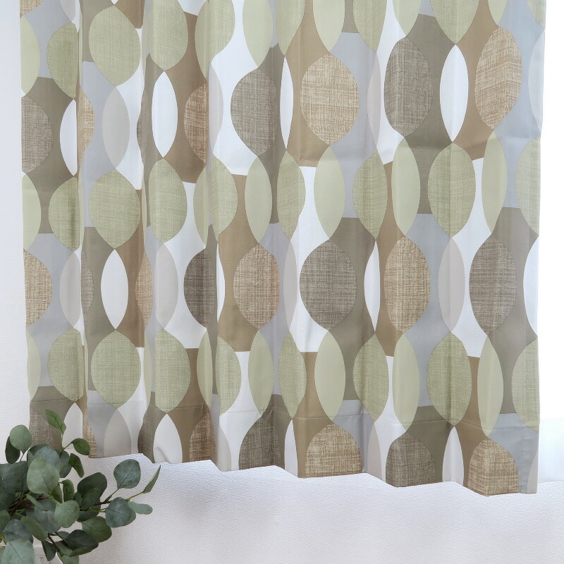 - 遮光カーテン 北欧 幾何学柄 ブラウン 幅125cm×丈245cm2枚 日本製 プリーツが綺麗な形態安定加工