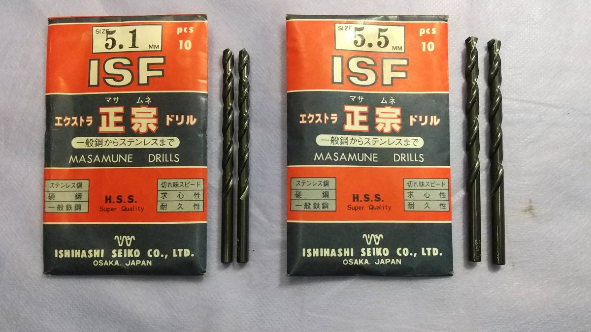 - 鉄鋼錐 正宗ISFドリル 5.1㎜+5.5㎜ 各2本、計4本セット 金属、ステン用錐 送料無料
