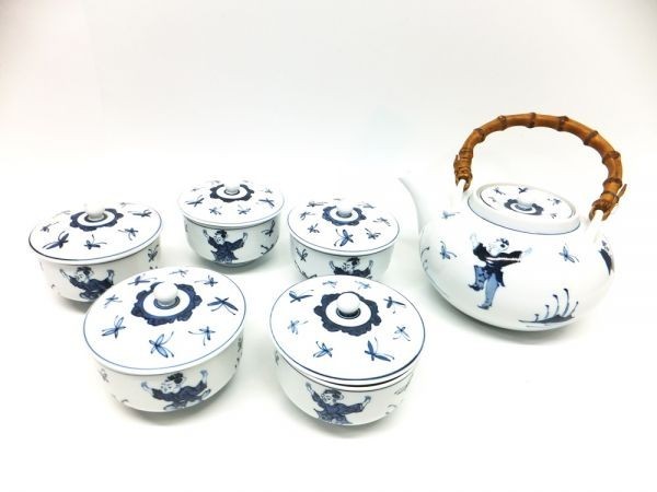 > 54▲a115☆昭和レトロ 中古品 ノリタケ 日陶印 手染付 茶器セット 急須 湯のみ×5 Noritake 訳あり 現状渡し▲