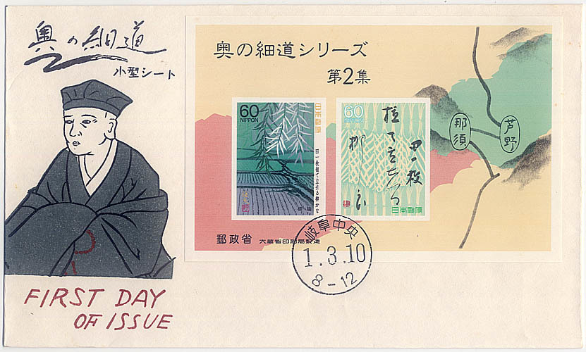 - B3★初日カバー丸型印付:1989 小型シート 奥の細道 第2集(柳陰)★(22.11.17)