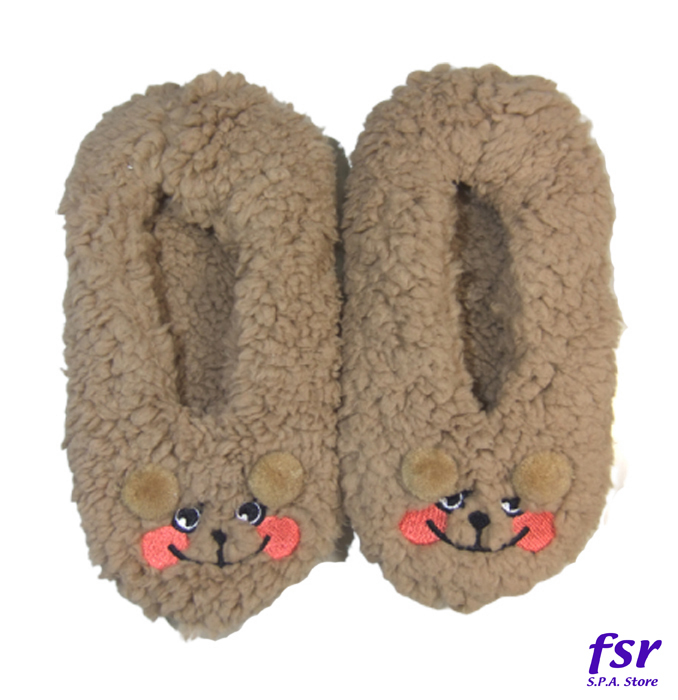 > ボアルームシューズ スリッパ レディースもこもこあったか 内側ボア 防寒 軽量 滑り止め付き かわいいくまの刺繍付き ベージュ SLP-9052-BG