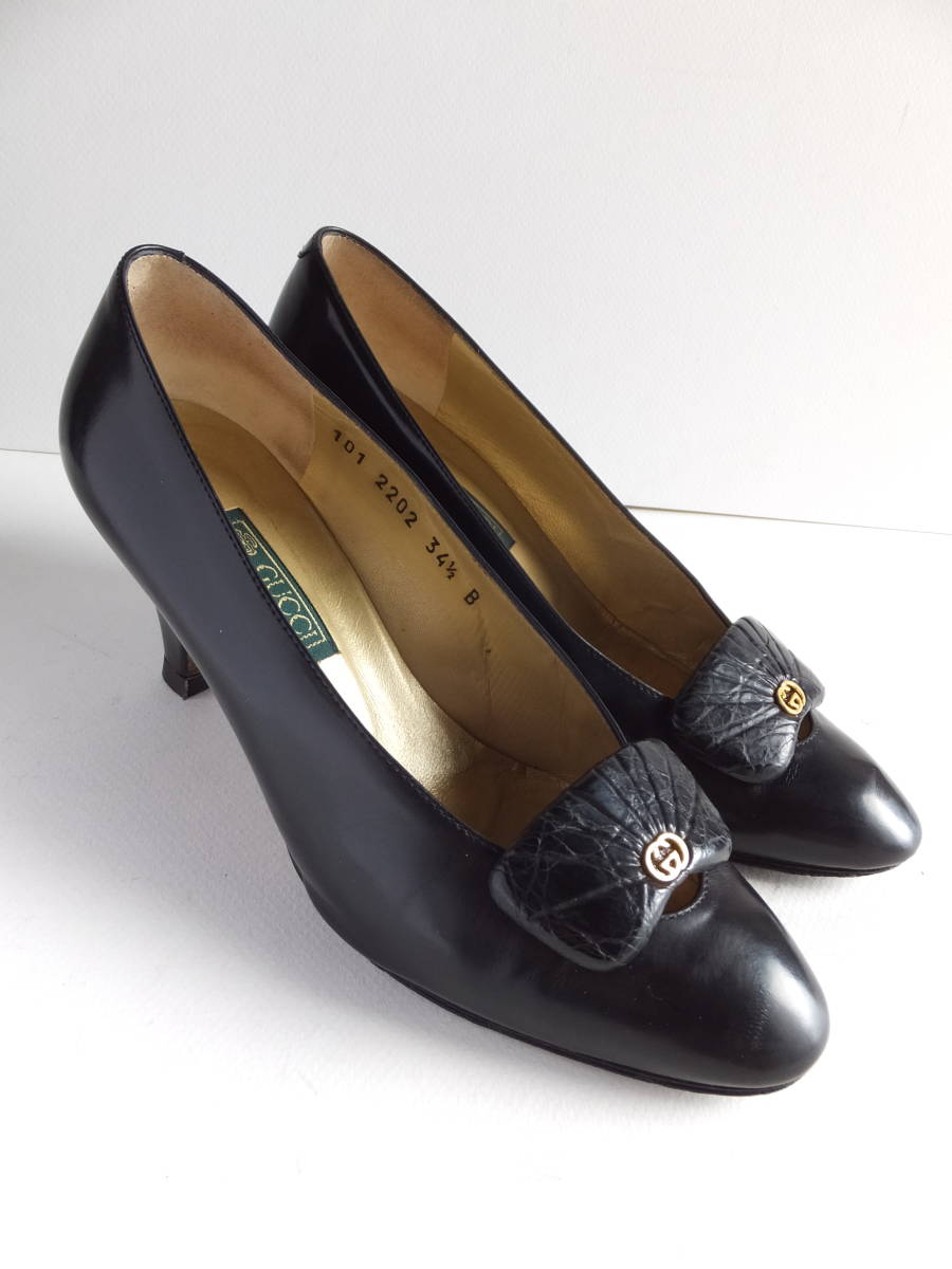 > GUCCI グッチ GG金具ロゴ パンプス 34 1/2(21.5cm程度) 黒 ブラック レザー 34.5 OLD ビンテージ