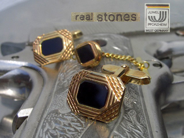 > †60S 70S JUWEL PFORZHEIM Vintage 西ドイツ 多角カット ギラギラ輝くクール オニキス タイピン カフス モダニズム ヴィンテージ レトロ