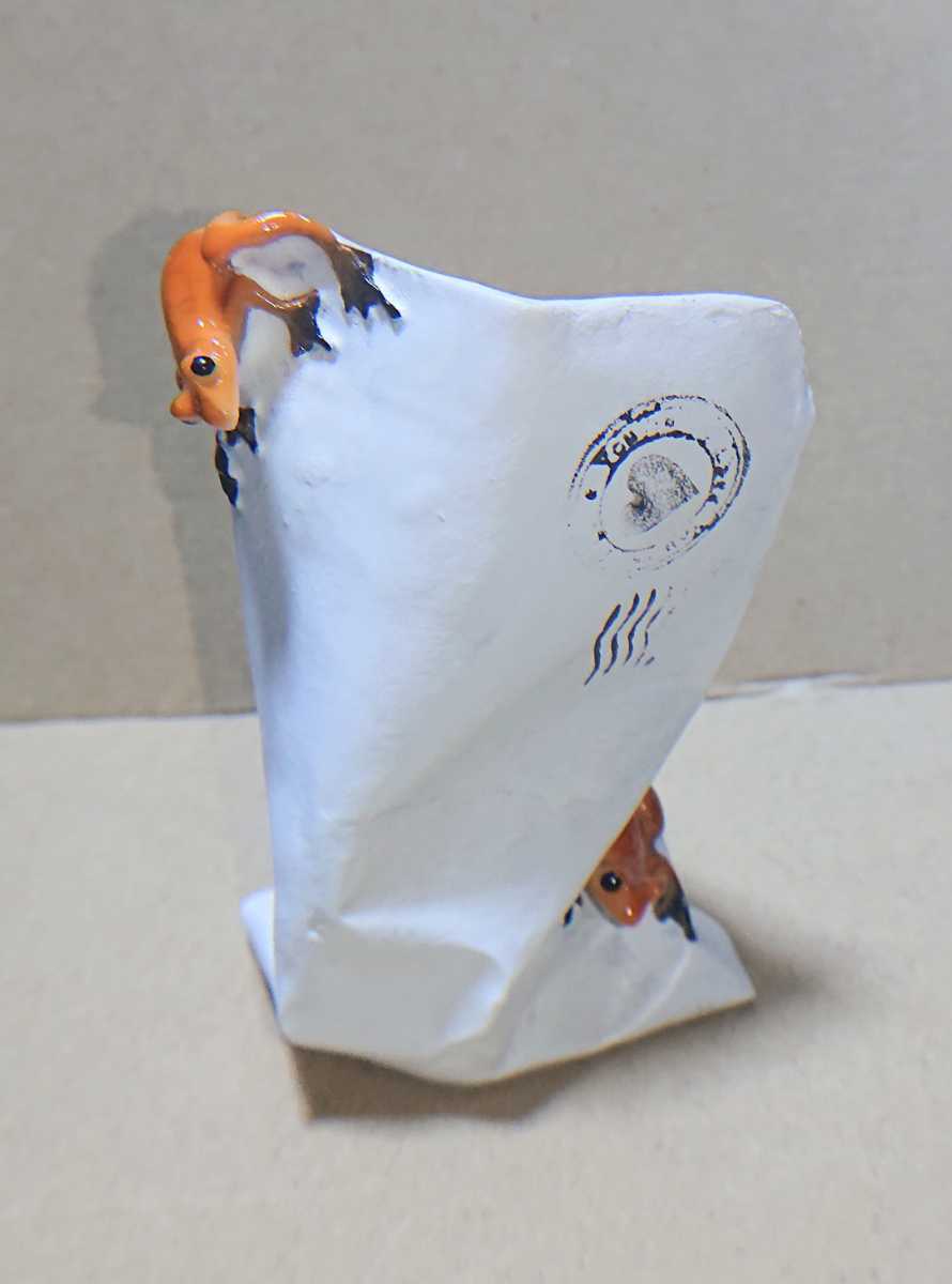 - カエルの親子&海外レターの置物 小物入れにも/ペン立て/蛙 かえる ハートの消印の手紙/雑貨 小物 置物/新品未使用