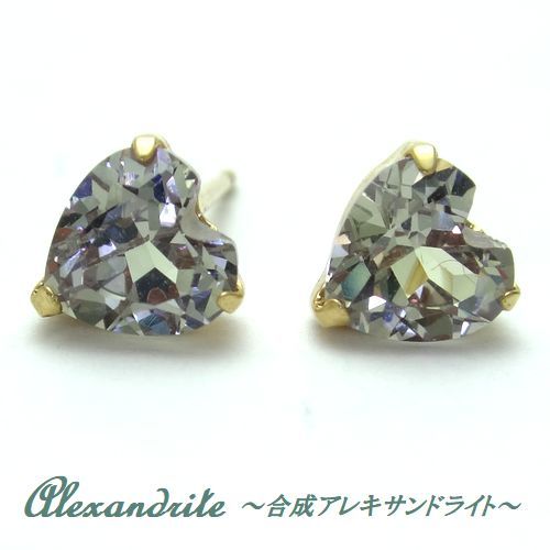 > K10YG/WG アレキサンドライト シンセティック 5mm ハート ピアス ジュエリー 10金 選べるゴールド カラーチェンジ かわいい 箱付き
