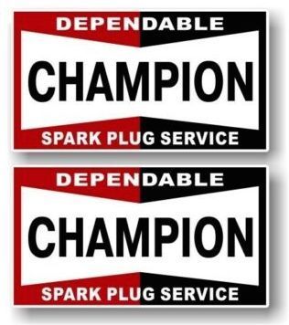 - 海外 限定品 送料込み CHAMPION Spark チャンピオン スパークプラグ 2枚セット 17.8 × 33cm 車 バイク ステッカー