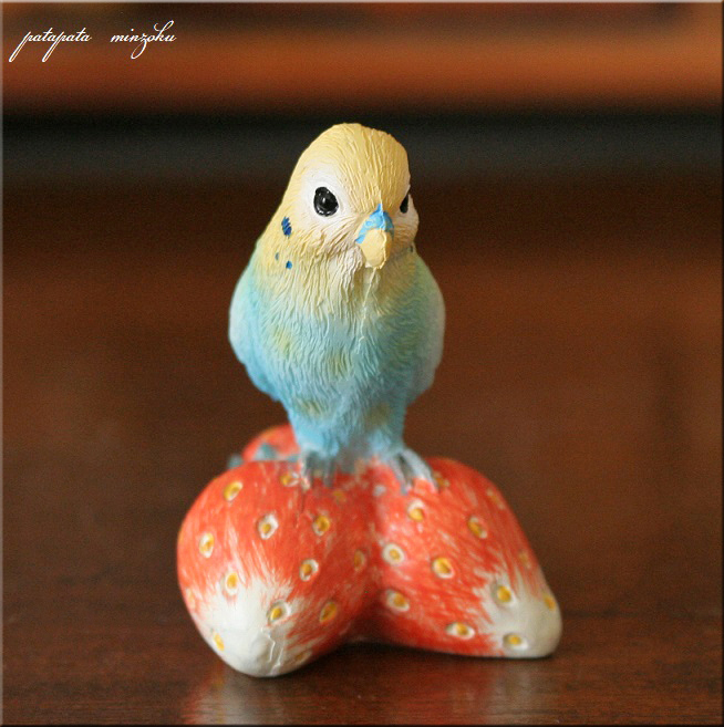> セキセイインコとイチゴ ダイカイ オブジェ インコとフルーツシリーズ 置物 鳥 小鳥 いちご 苺 インコ パタミン 雑貨