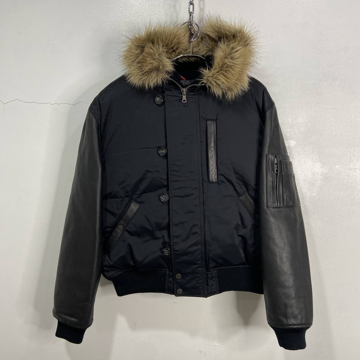- 送料無料☆TOMMY HILFIGER☆トミーヒルフィガー☆レザー切り替えダウンジャケット☆N-2B☆ブラック☆M☆L22