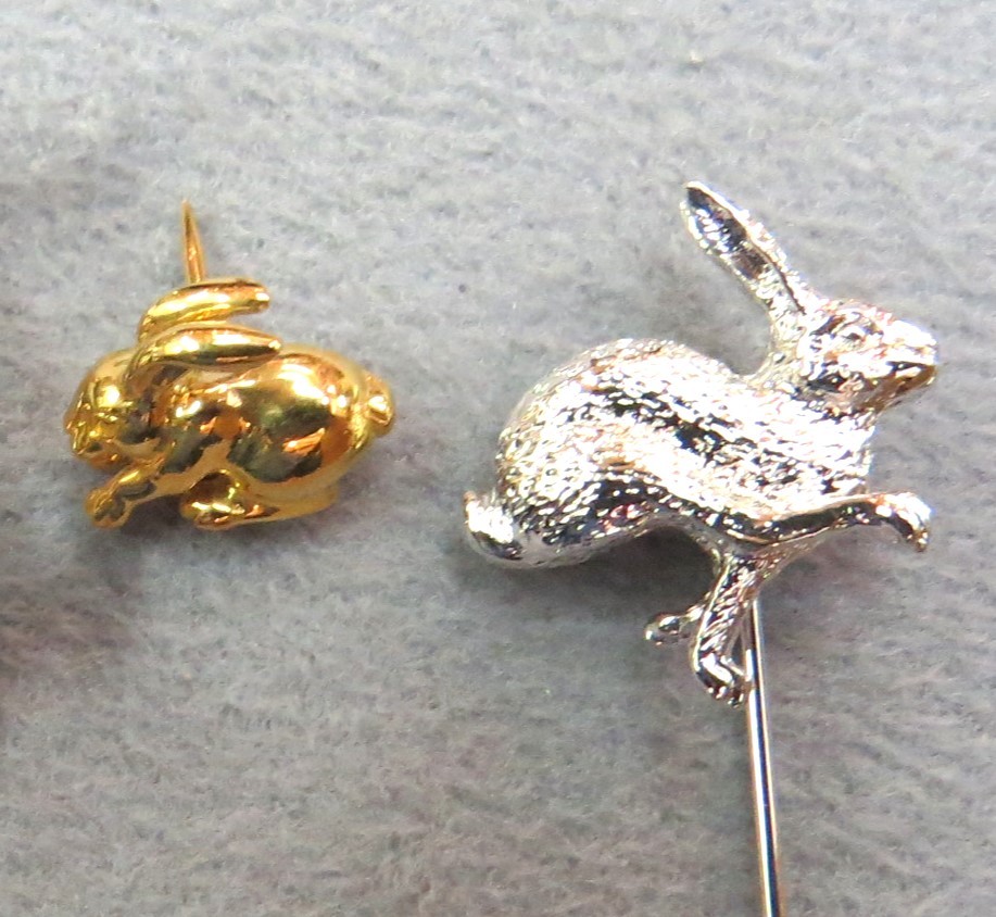 - レア!【うさぎ】2個!【ピンブローチ】【カラーバッヂ】消費税と送料込み【お守り・縁起物】シルバー製