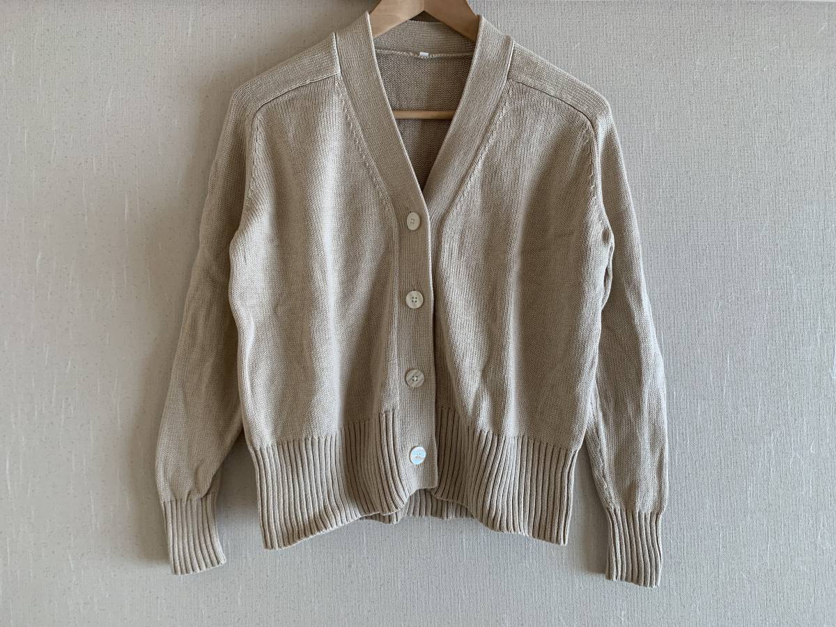 > ◆2回使用 美品 MUJI 無印良品 天竺編み ショート カーディガン 4990円 ベージュ オーガニックコットン ニット 洗濯済み 匿名発送]