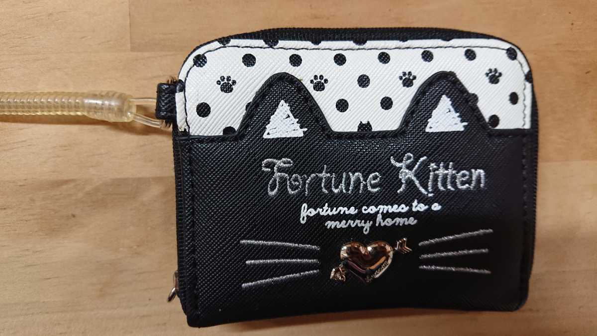 - 新品☆猫モチーフねこネコ 小銭入れコインケース財布パスケース定期入黒
