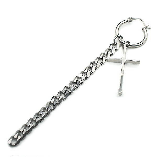 > ★インスタ映え★片耳販売★ゆらゆら揺れる★金属アレルギー&海水浴&温泉OK★ステンレスフープピアス★シルバークロス&喜平チェーン
