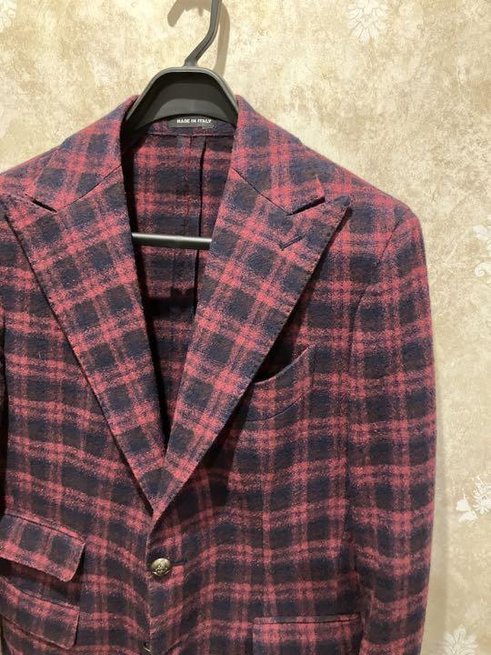 > 【美品】RUSSI イタリア製 テーラードブロックチェックジャケット Mサイズ レオン LEON ラグジュアリー