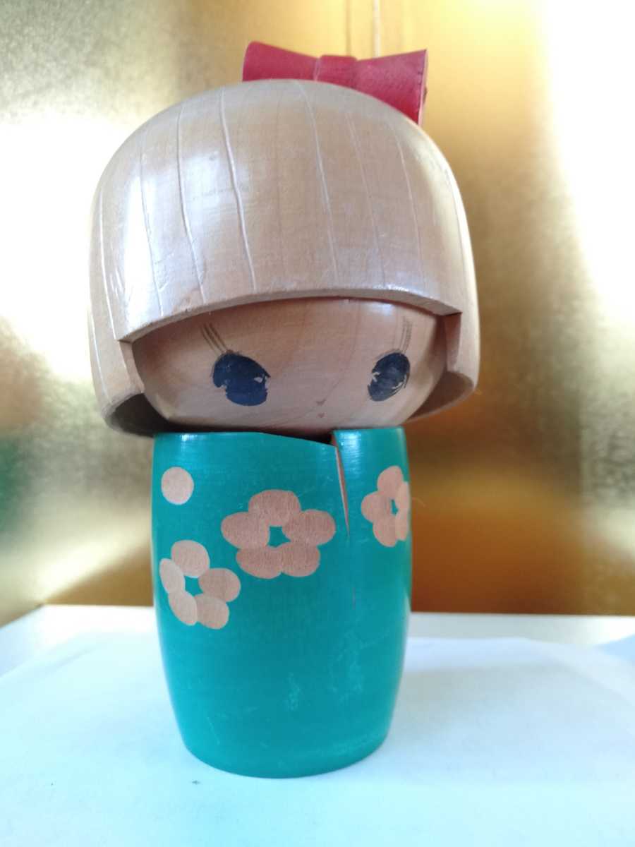 - [緑色の着物を着たこけし]高さ12cm/頭周り21cm