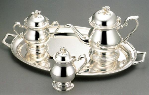 > ★早川シルバー洋白銀器VIPシリ-ズティ-ポット4点セットCタイプ(ティーポット・シュガーポット・ミルクポット・小判トレー)日本製