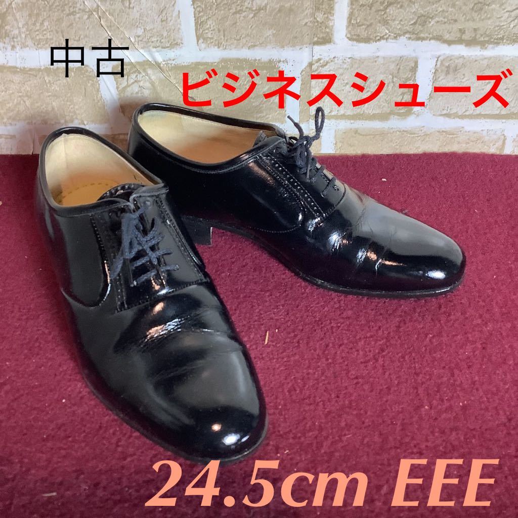 - 【売り切り!送料無料!】A-288 ビジネスシューズ!黒!24.5cm EEE!プレーントゥ!レザー!仕事!ビジネス!通勤!就活!中古!