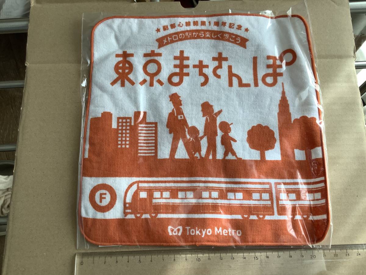 - 東京メトロ 片面ガーゼタオルハンカチ オレンジ 副都心線開業1周年記念 まちさんぽ 未使用 今治製!