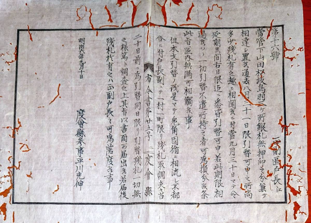 - f23022513〇明治布告布達 明治6年 下山田 松坂 鳥羽 銀札無押印の分 引換 度会県 三重県 〇和本古書古文書