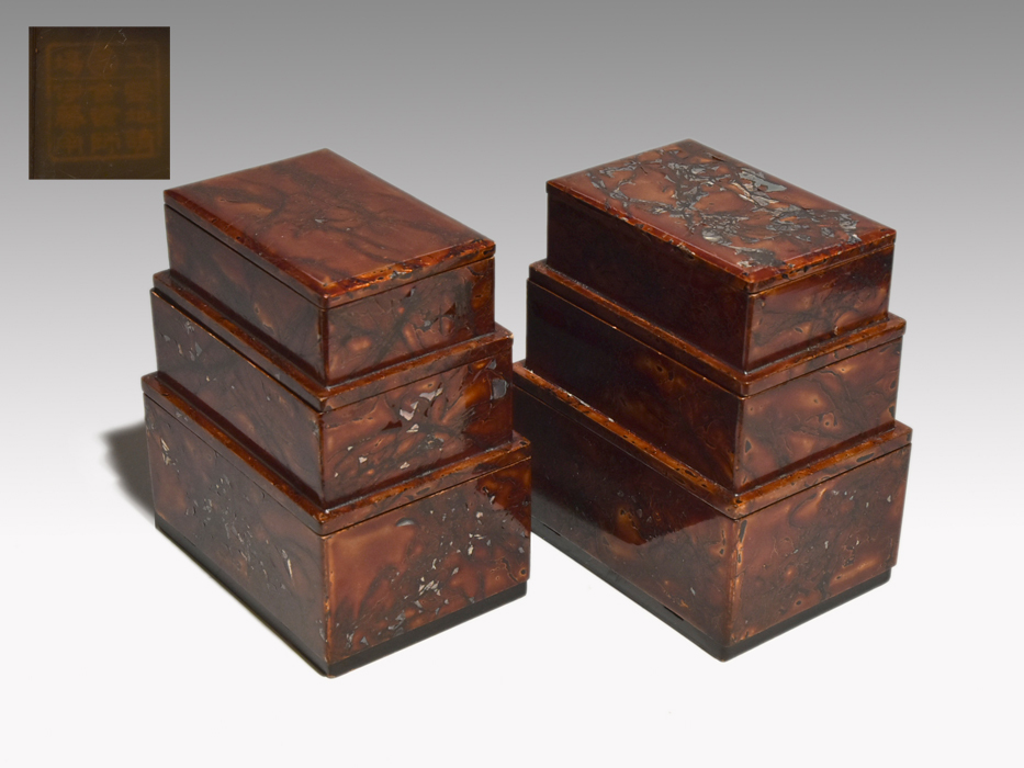 - 時代 明治初期製 竹の子重箱 二 高さ13.8㎝ 共箱 天然木 木工芸 漆芸 懐石 y1323