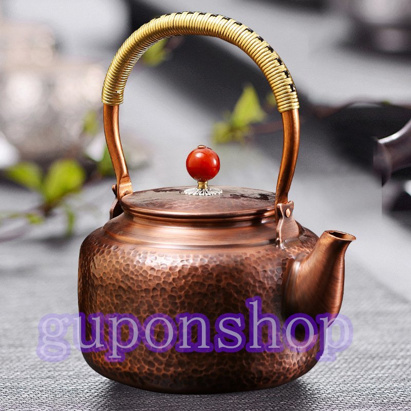 - 強くお勧め★古風銅瓶1.4L 手作り /やかん /紫銅製 /大容量 /茶道具/ 銅びん//煎茶道具 提梁壺