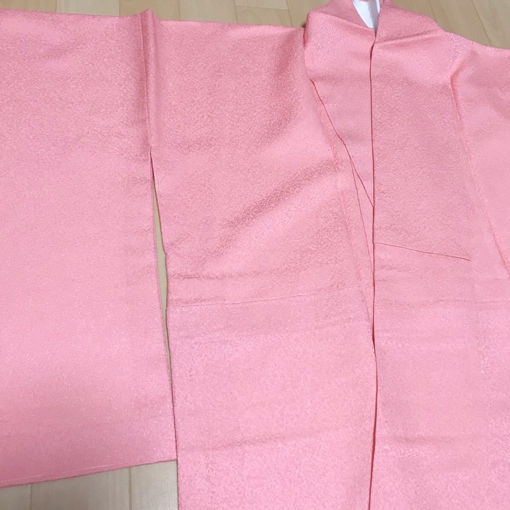 - 着物 レディース 女物 無地 色無地 ピンク系 袷着物 合わせ あわせ 袷 仕立て上がり 草木染 紋入り a51