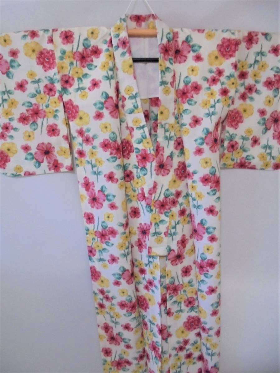 - 22.和装 着物 小紋 ベージュ アイボリー系 花 和服 かわいい