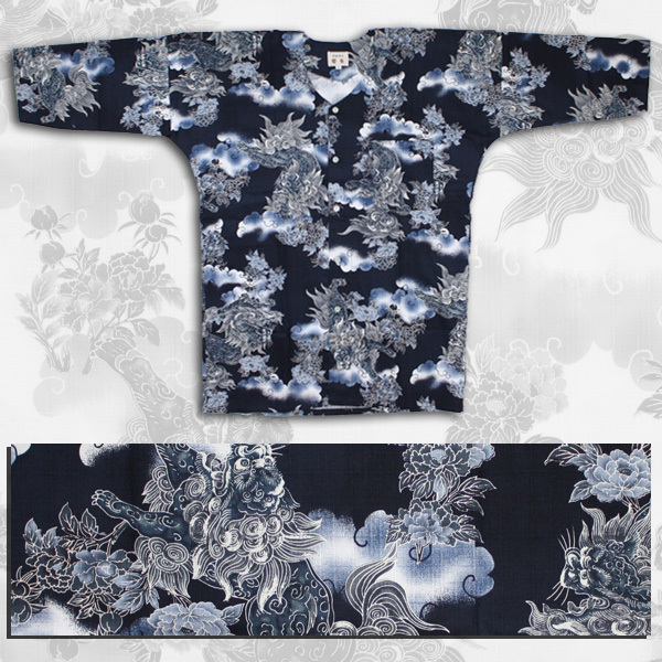 - お祭用品/肉襦袢 鯉口シャツ 唐獅子牡丹 175紺 4号(子ども用)