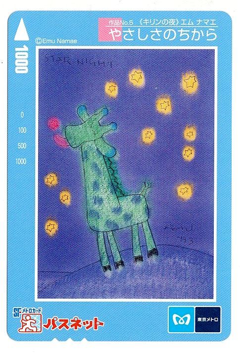 > 【パスネット】「やさしさのちから」作品No.5 「キリンの夜」エム・ナマエ 1000円分 パスネットカード【未使用】