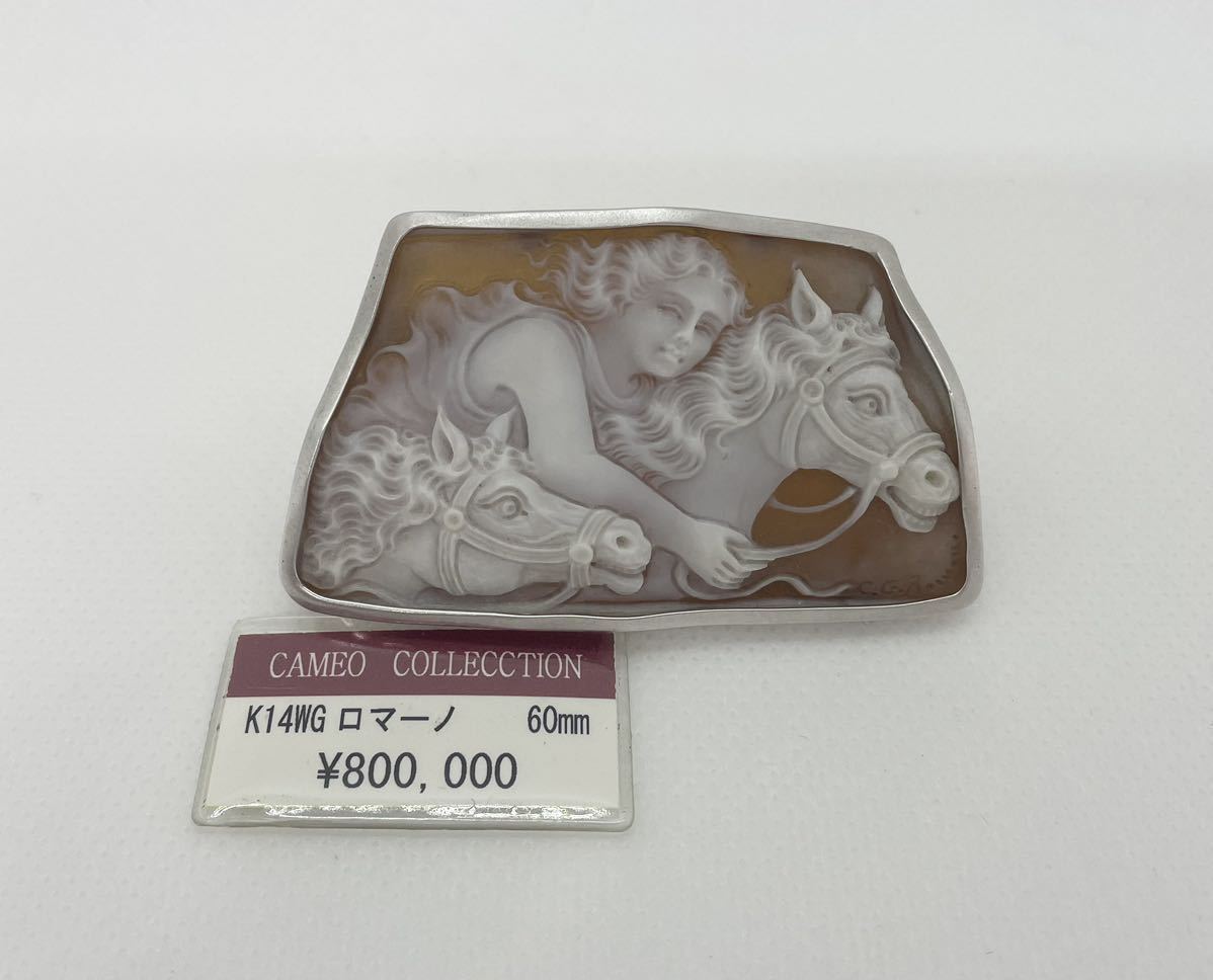 - 【新品】イタリアカメオ彫刻家ロマーノ氏シェルカメオ*ブローチ兼ペンダントトップ/女性と馬