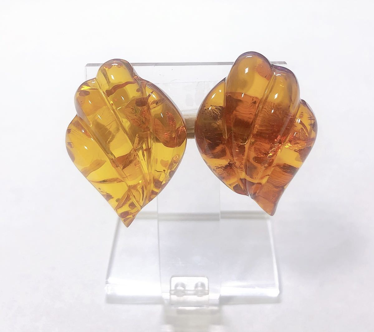 - 【質屋 尾張屋商店 東京】 ☆仕上済☆ K18YG 琥珀レディースイヤリング