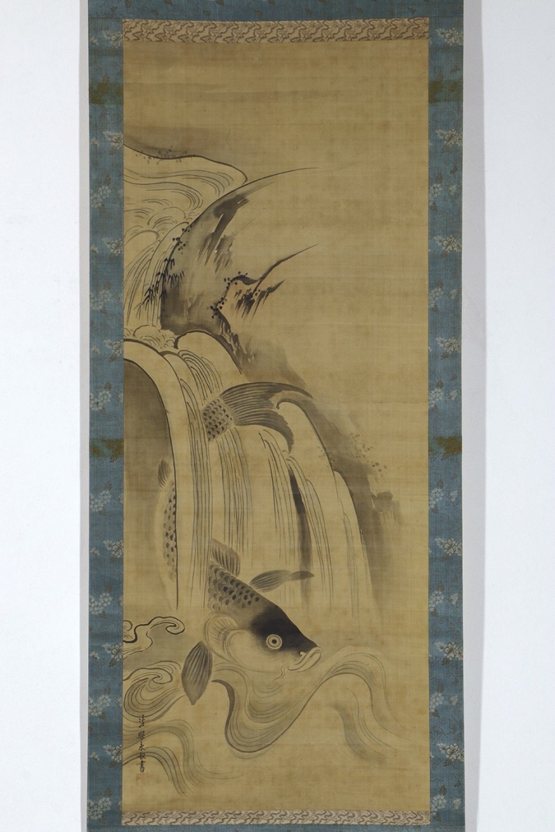 - 【真作】掛軸「狩野永叔 龍門図」江戸中期 狩野派 中橋狩野家 奥絵師 絵画