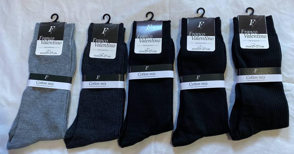 - ビジネスソックス 5足まとめ売り 25~27cm フランコバレンチノ グレー黒 綿混リブ網□□未使用品