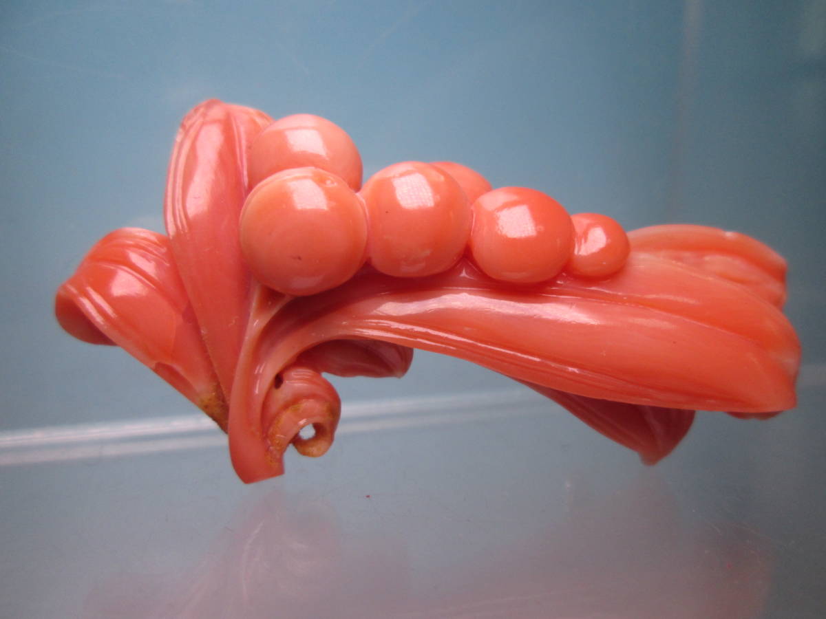 - ☆アンティーク・本珊瑚 花と実彫刻の帯留め 11,12g